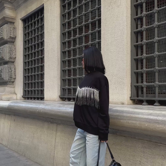 This Black Tassel Detailed Sweatshirt combines comfort and style with its tassel detailing and cozy fit. Perfect for a casual day out or lounging at home, this sweatshirt is a must-have for any wardrobe. Experience both comfort and fashion with this versatile piece.